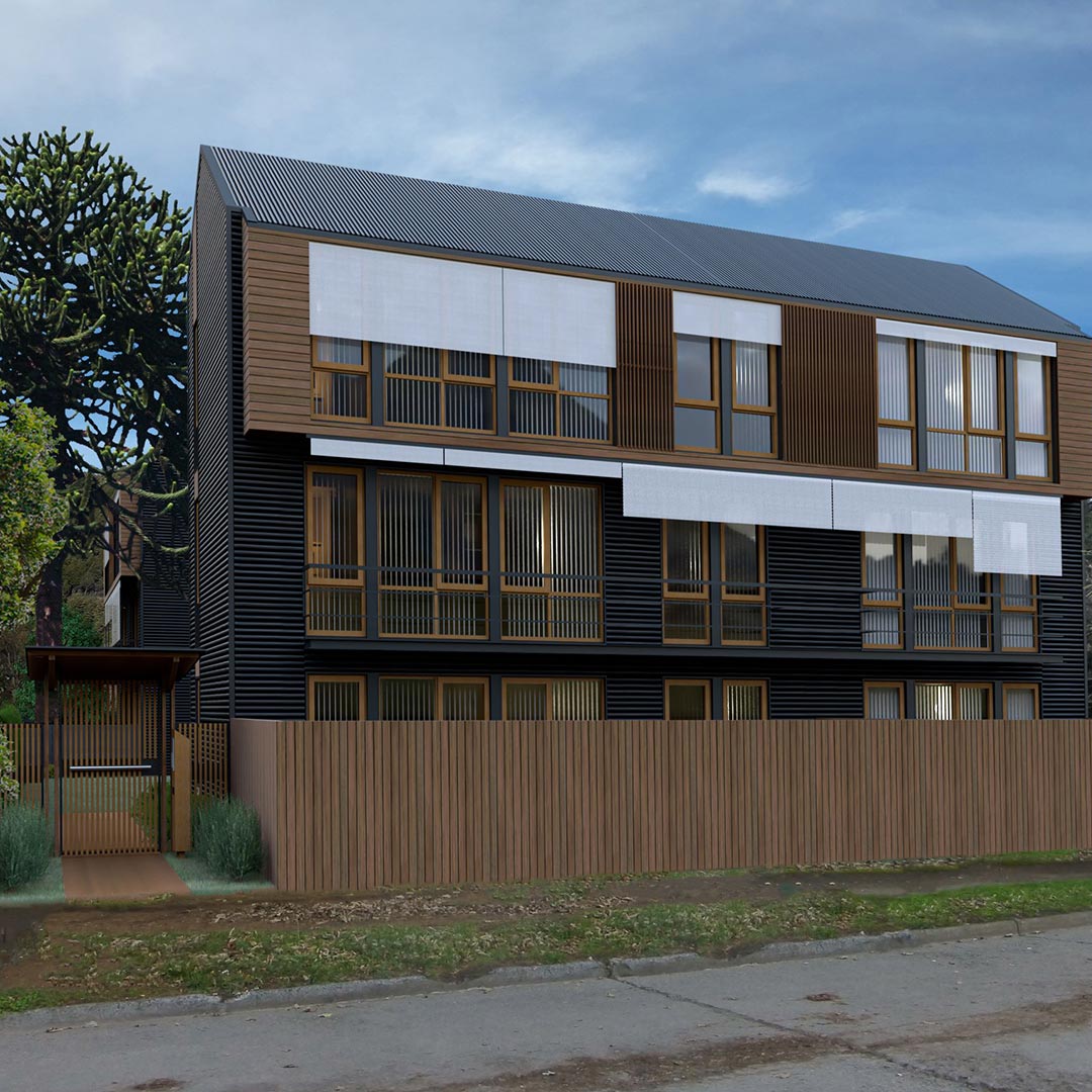 VIVERO 8, es un nuevo concepto de edificio construido en madera, pensado para que sus ambientes puedan variar según su uso. El proyecto tiene aproximadamente 1000m2 formado por 21 unidades funcionales de departamentos y contará con un lavadero en común con máquinas lavadoras y secadoras y ascensor. Los espacios comunes están construidos con deck de madera, escaleras y pasarelas de distribución semicubiertas, enmarcado por diferentes especies arbóreas como robles y coihues.
